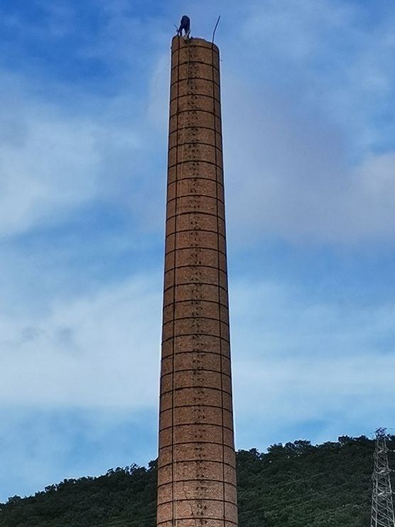 2017年,拆除的工具已經(jīng)從鐵錘換成了電動(dòng)工具電鎬,拆除更加快捷,更加穩(wěn)定,人在拆除時(shí)安全系數(shù)極大提升。采用扒桿,固定安全繩,煙囪上墊上木板人工施工面得到極大提升。
