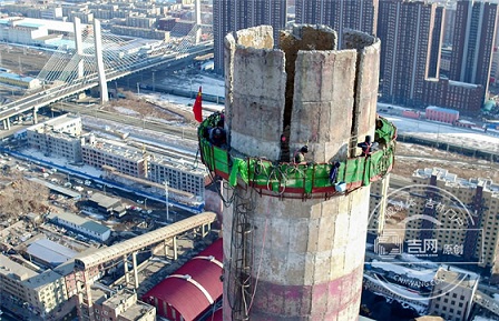 12月15日,隨著兩聲爆破聲響起,呼和浩特?zé)犭姀S一座180米高的50兆瓦熱電機(jī)組煙囪轟然倒地。