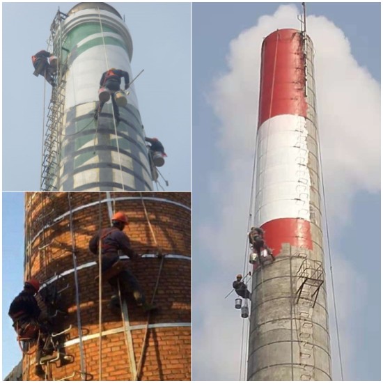 煙囪內(nèi)壁清灰及探傷檢查:煙囪多年運(yùn)行使用,煙囪內(nèi)壁灰塵積聚在煙囪內(nèi)壁上,多年的使用,使煙囪內(nèi)壁積灰增厚,嚴(yán)重影響煙囪的抽風(fēng)力。煙囪進(jìn)行定期內(nèi)壁清灰及煙囪內(nèi)壁探傷檢查(煙囪內(nèi)壁清灰、采用高空懸掛作業(yè)、進(jìn)行煙囪內(nèi)壁清灰及煙囪內(nèi)壁探傷檢查照相)。