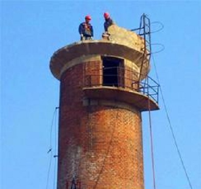 (1)煙囪正常完好,施工人員從煙囪外壁的鋼爬梯上進(jìn)行登攀到煙囪頂部(第1次攀登煙囪鋼爬梯時(shí)、首先帶好安全保險(xiǎn)帶、每個(gè)煙囪鋼爬梯都要進(jìn)行試?yán)蛽u動(dòng)、確保煙囪鋼爬梯的承受力),施工人員把保險(xiǎn)帶牢固的栓在煙囪鋼爬梯上(栓保險(xiǎn)帶時(shí)、必須要栓2-3個(gè)牢固鋼爬梯上),保險(xiǎn)帶確保牢固后,施工人員在煙囪頂部進(jìn)行人工拆除煙囪。