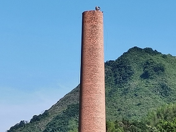 3、煙囪拆除前,應仔細檢查爬梯腐蝕程度,不安全的地方進行加固,以便施工上下。