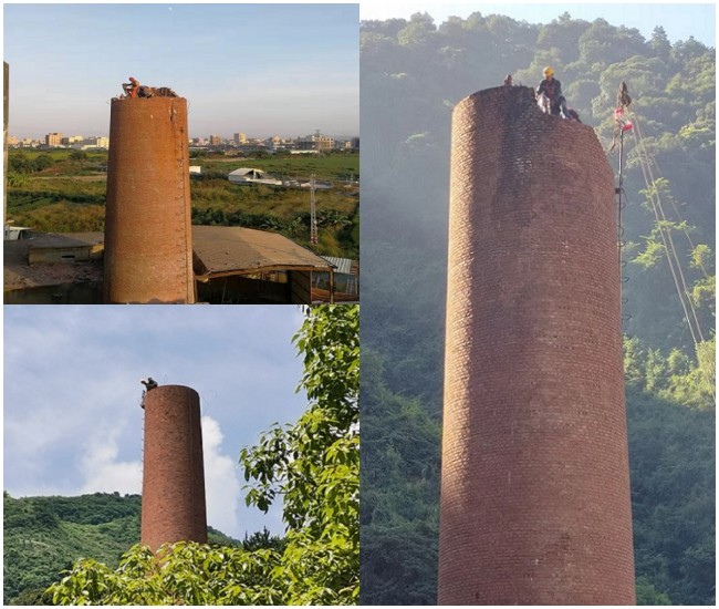 看上去是不是很危險呢,據(jù)說這樣額煙囪沒拆除一根收費(fèi)至少都在萬元以上,高度、體積和難道越大收費(fèi)也會越高。
